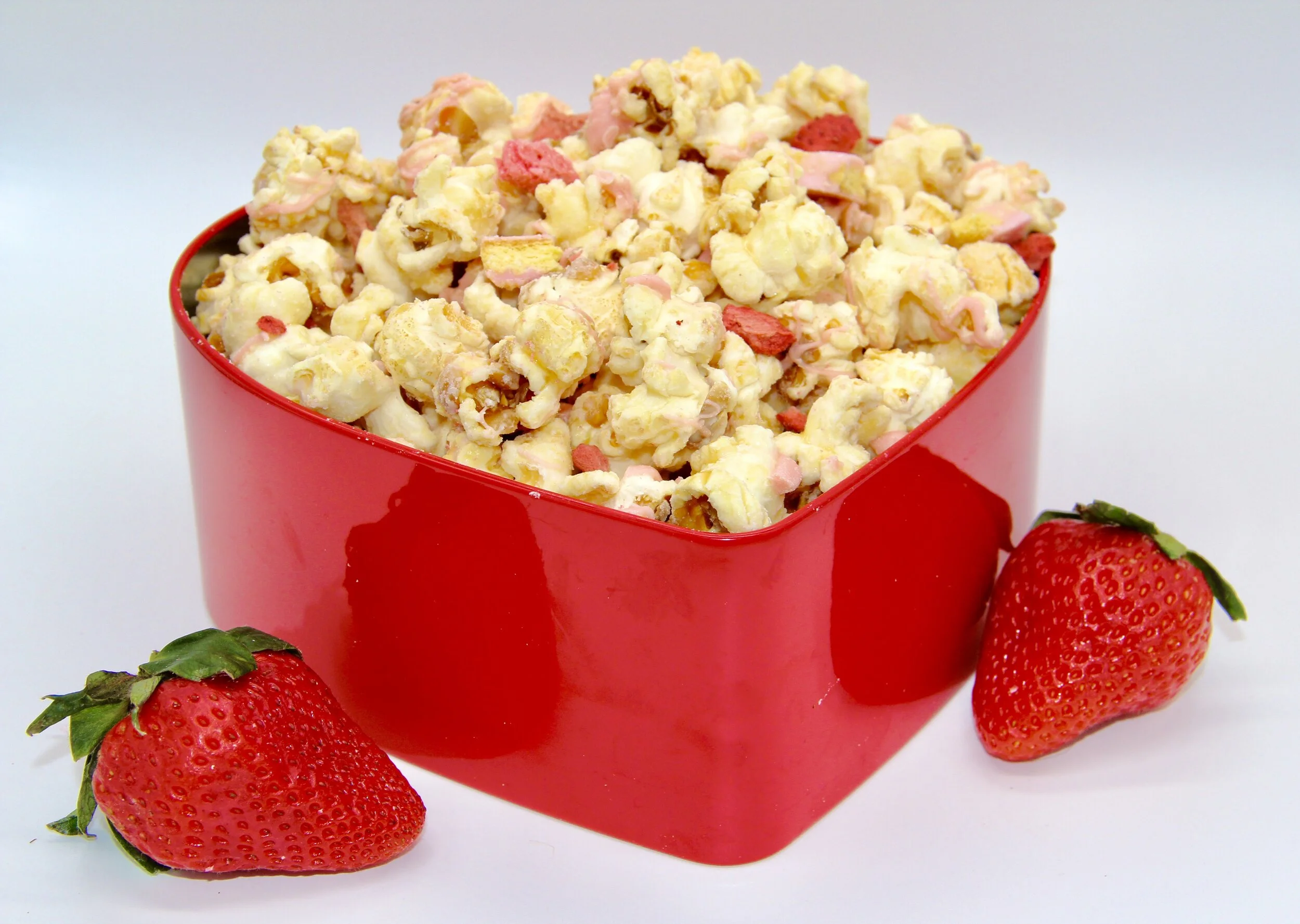Delicious kettle popcorn covered in white chocolate drizzled with a lemon flavor and sprinkled with lemon cookies!